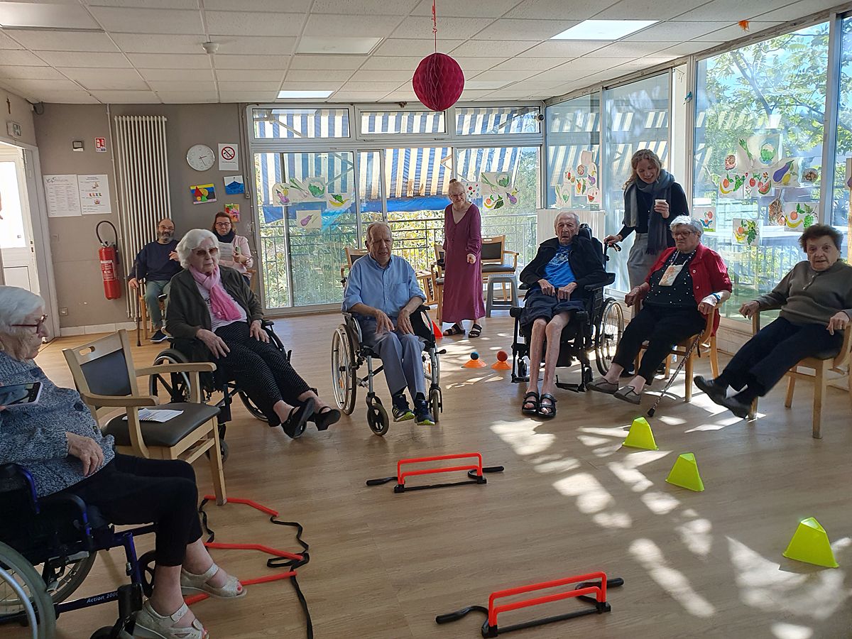 Au programme : Cours de sport adapté avec l’association « AIR DE VIE » qui intervient chaque semaine pour mobiliser nos chers résidents en fonction des possibilités de chacun. Puis notre chef a procédé à la distribution d’un smoothie fait maison. Enfin résidents, familles, visiteurs et les équipes ont pu participer à un atelier Sophrologie avec BRAIN UP pour la relaxation.